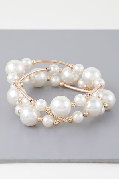 Add a refined touch to your accessory collection with the Triple Multi Pearl Wire Bracelet. Order now and experience the perfect combination of elegance and style!